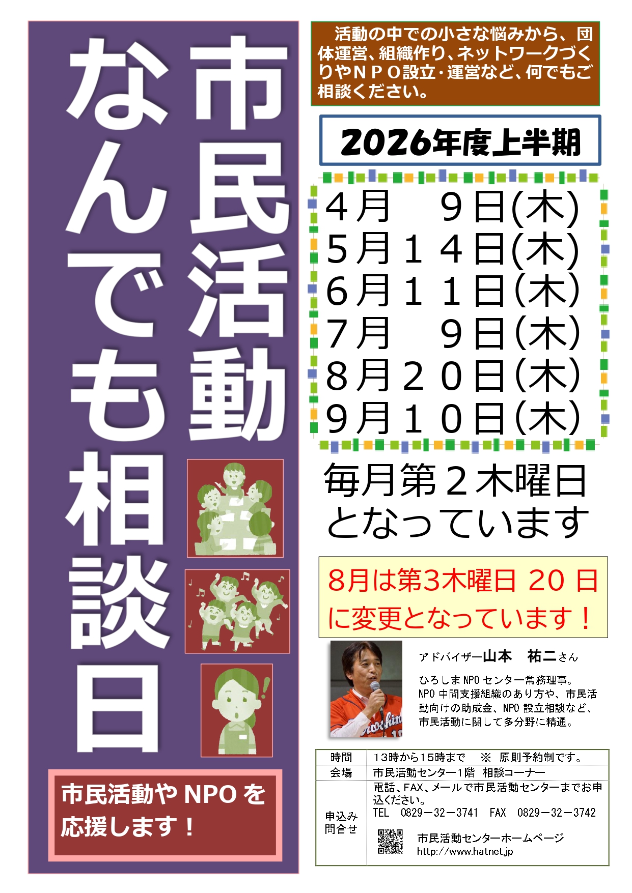 申込 電話、ファックス、メールで市民活動センターまで(原則予約制)